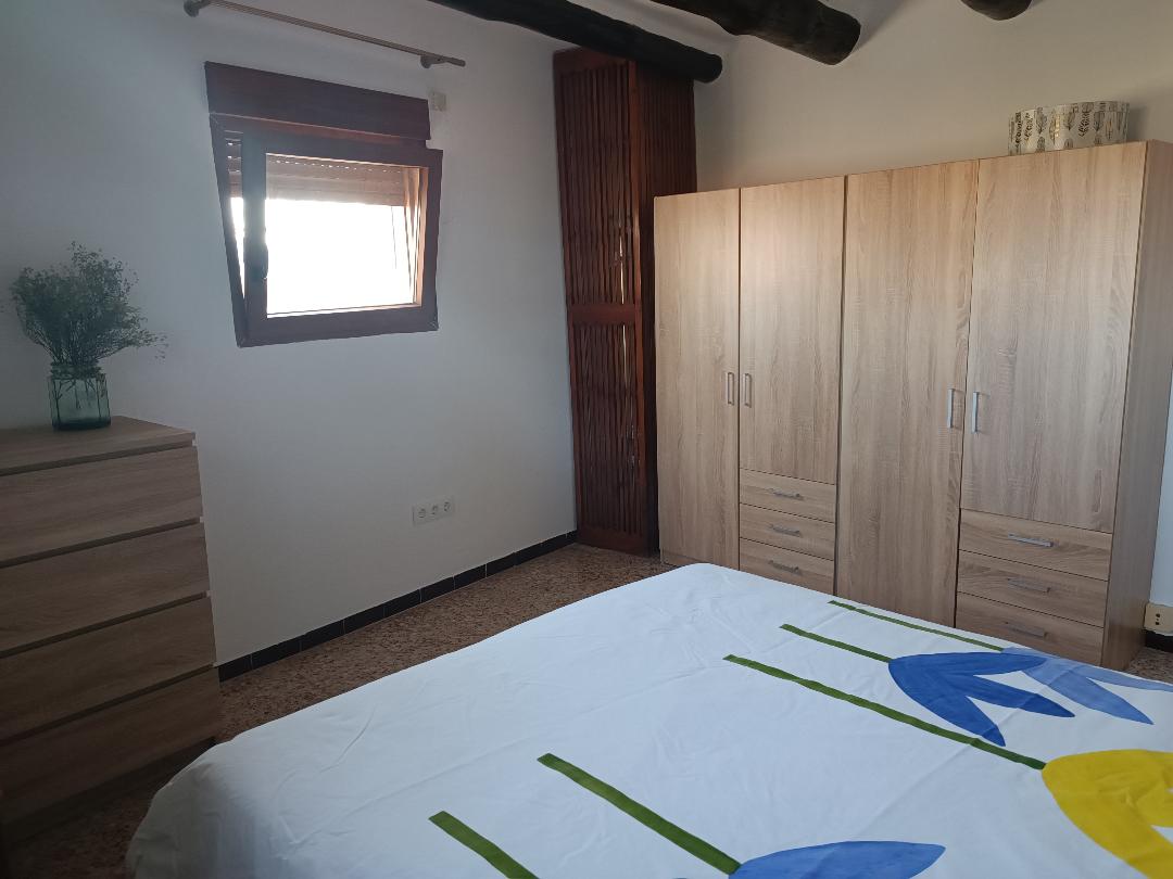 En el segundo piso, un dormitorio con una cama de 150 cm y una terraza.