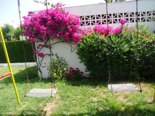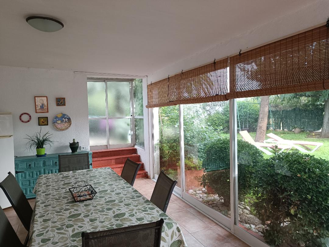 En el exterior, la casa tiene un jardín de 400 m² con árboles y plantas totalmente vallado, con columpios. Una terraza con barbacoa, ducha exterior y un antiguo pozo. Garaje para un coche con posibilidad de aparcamiento para otros coches.